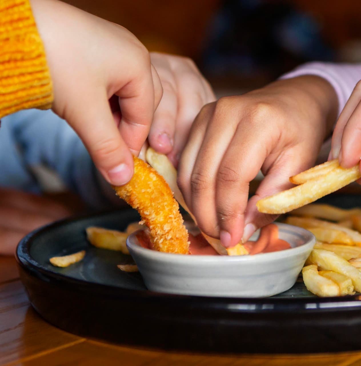 Our kids’ menu is designed to please even the pickiest eaters. From mini paellas and mac & cheese to chicken bites and sweet meatballs, each meal is balanced, mild, and kid-approved—served with fruit, potatoes, or rice, and topped off with a smile